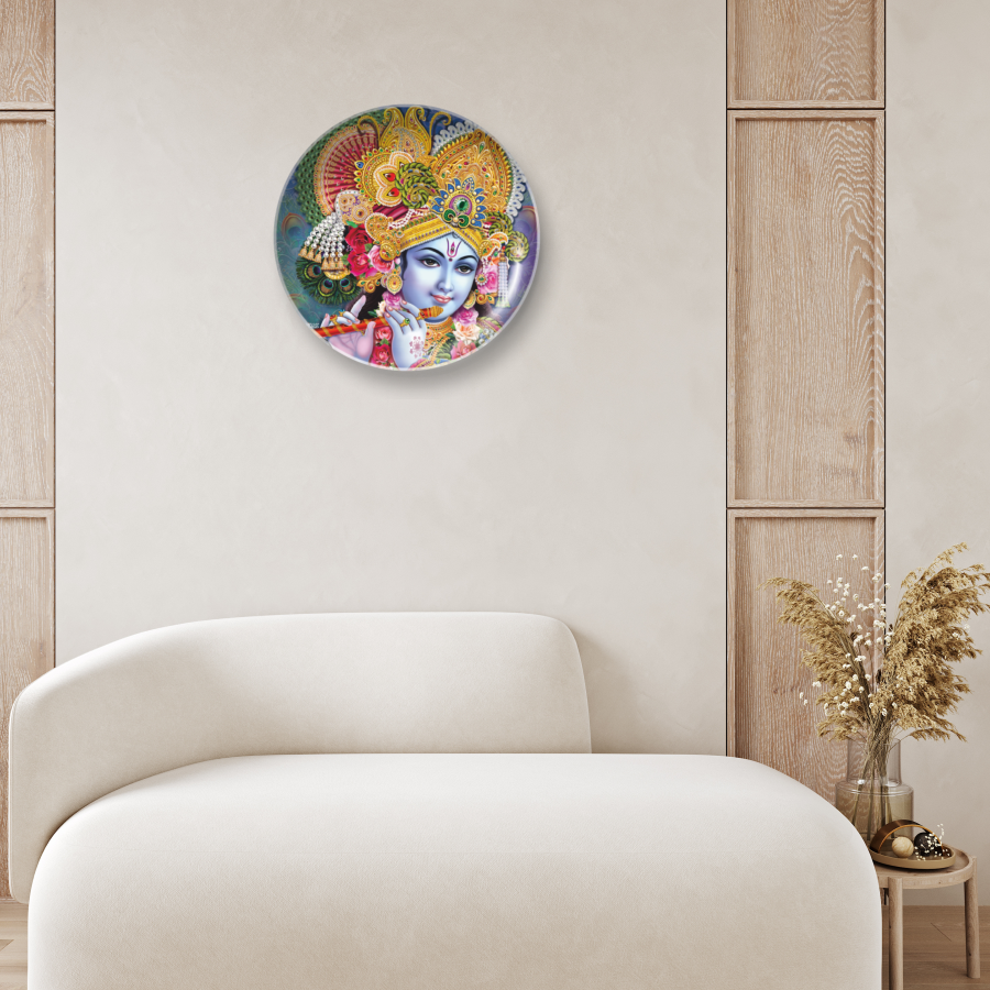 Krishna With Flute, a digital illustration, transferred on a Ceramic Plate is sure to enhance the class of your interiors.
