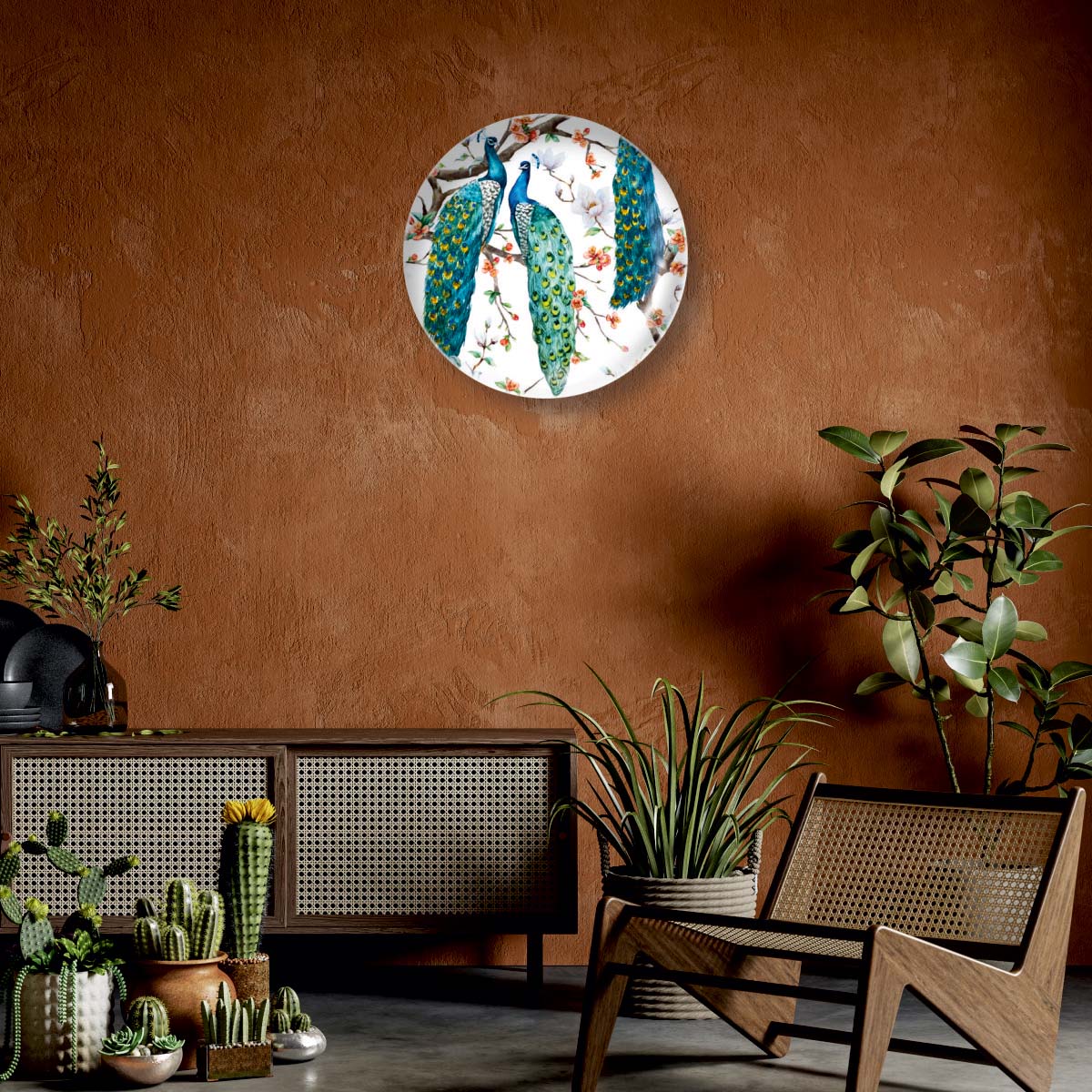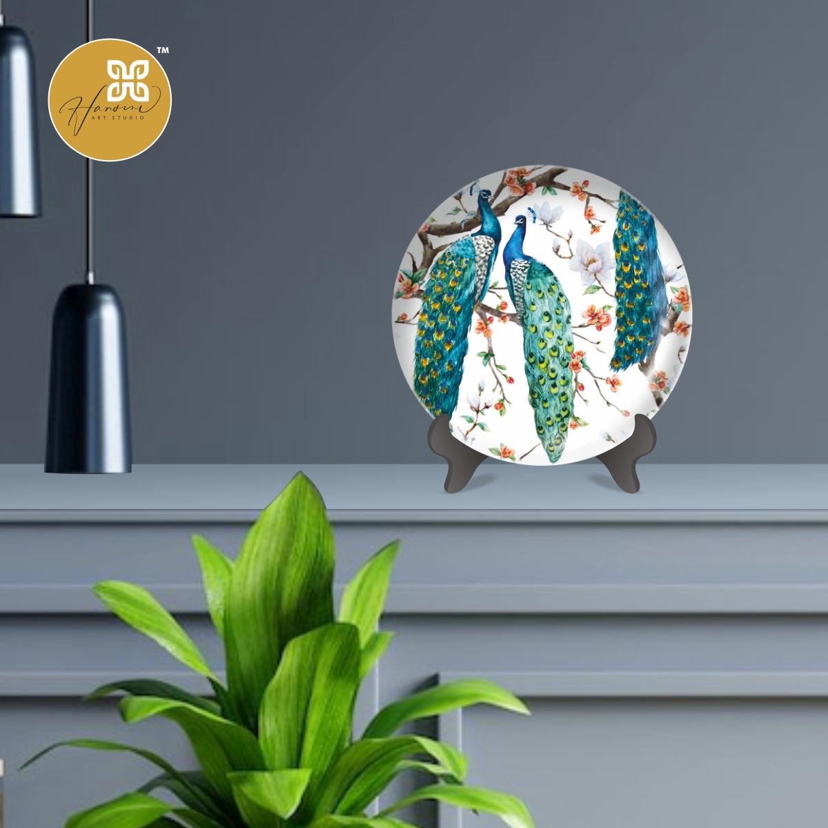 Two Peacocks, digitally illustrated and transferred on a Ceramic Plate is sure to enhance the class of your interiors.
